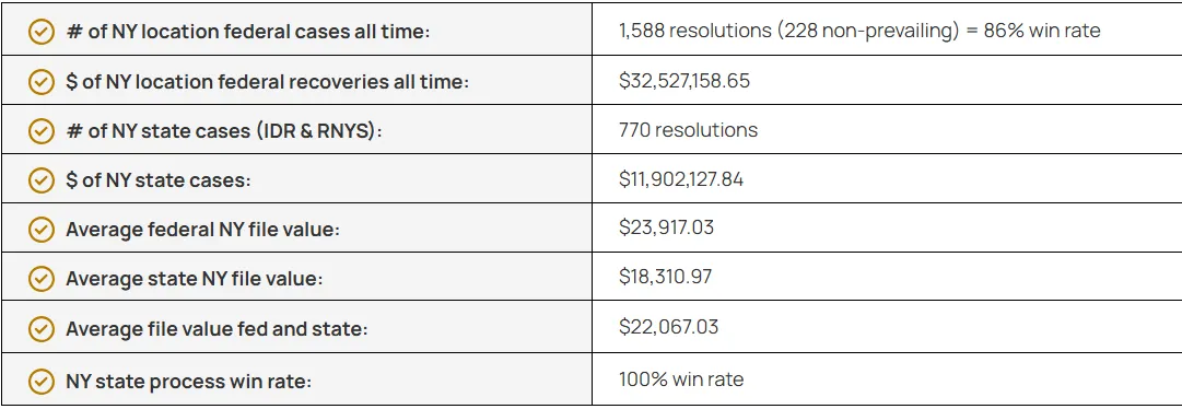 Proven success navigating New York’s state-specific IDR framework.
